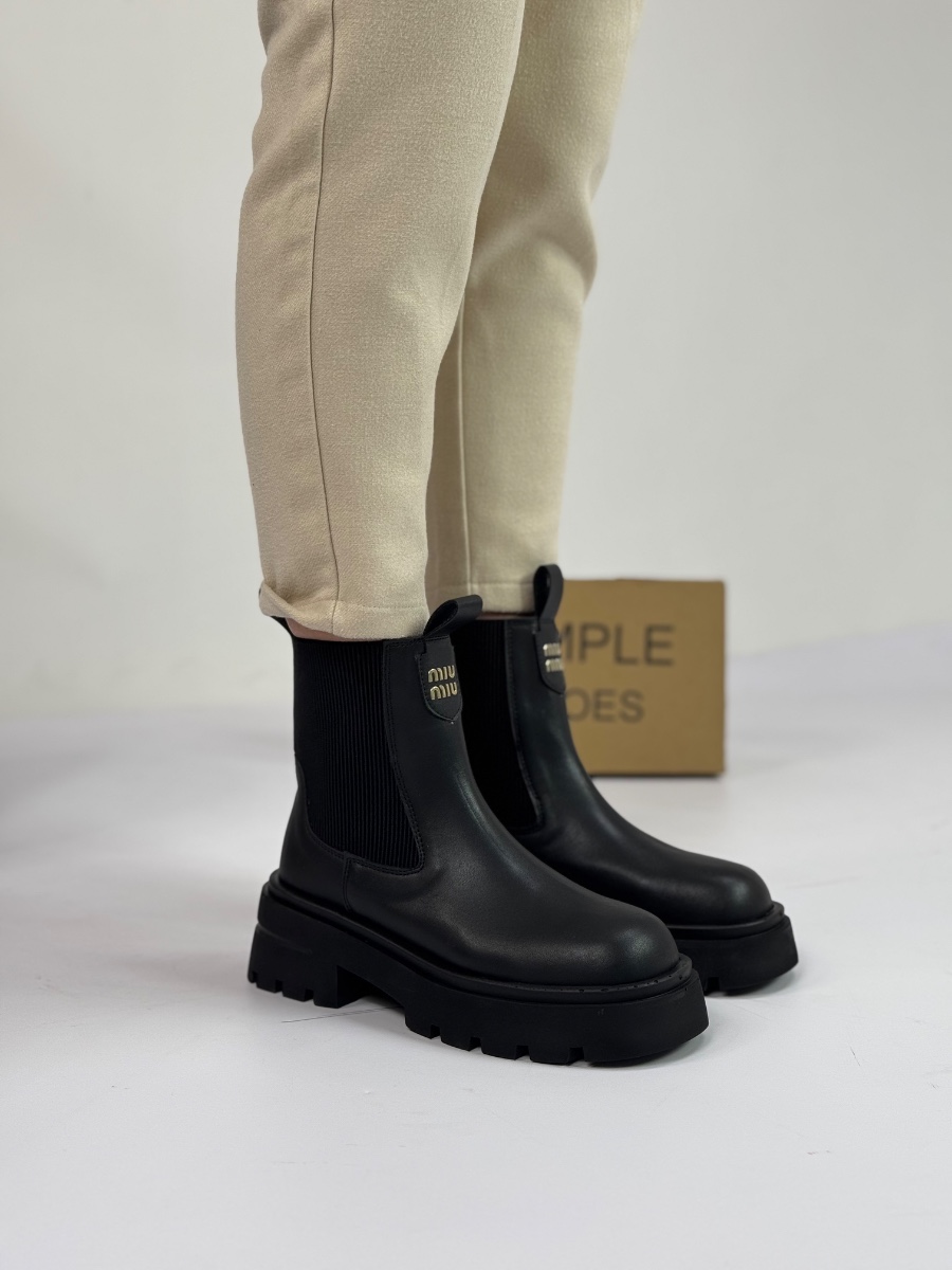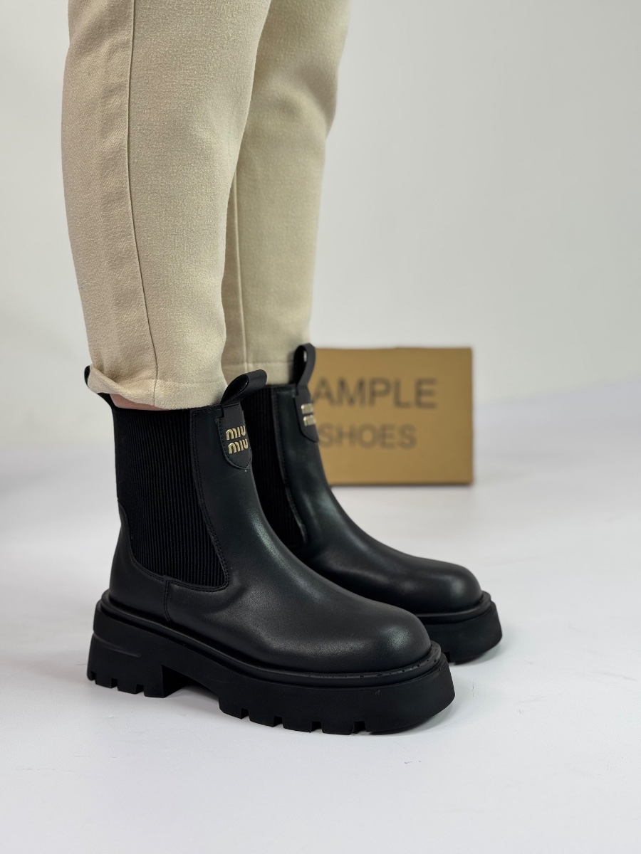 👢 معرفی محصول: نیمبوت چلسی پلتفرم با لوگوی میومیو (Chunky Platform Chelsea Boot)