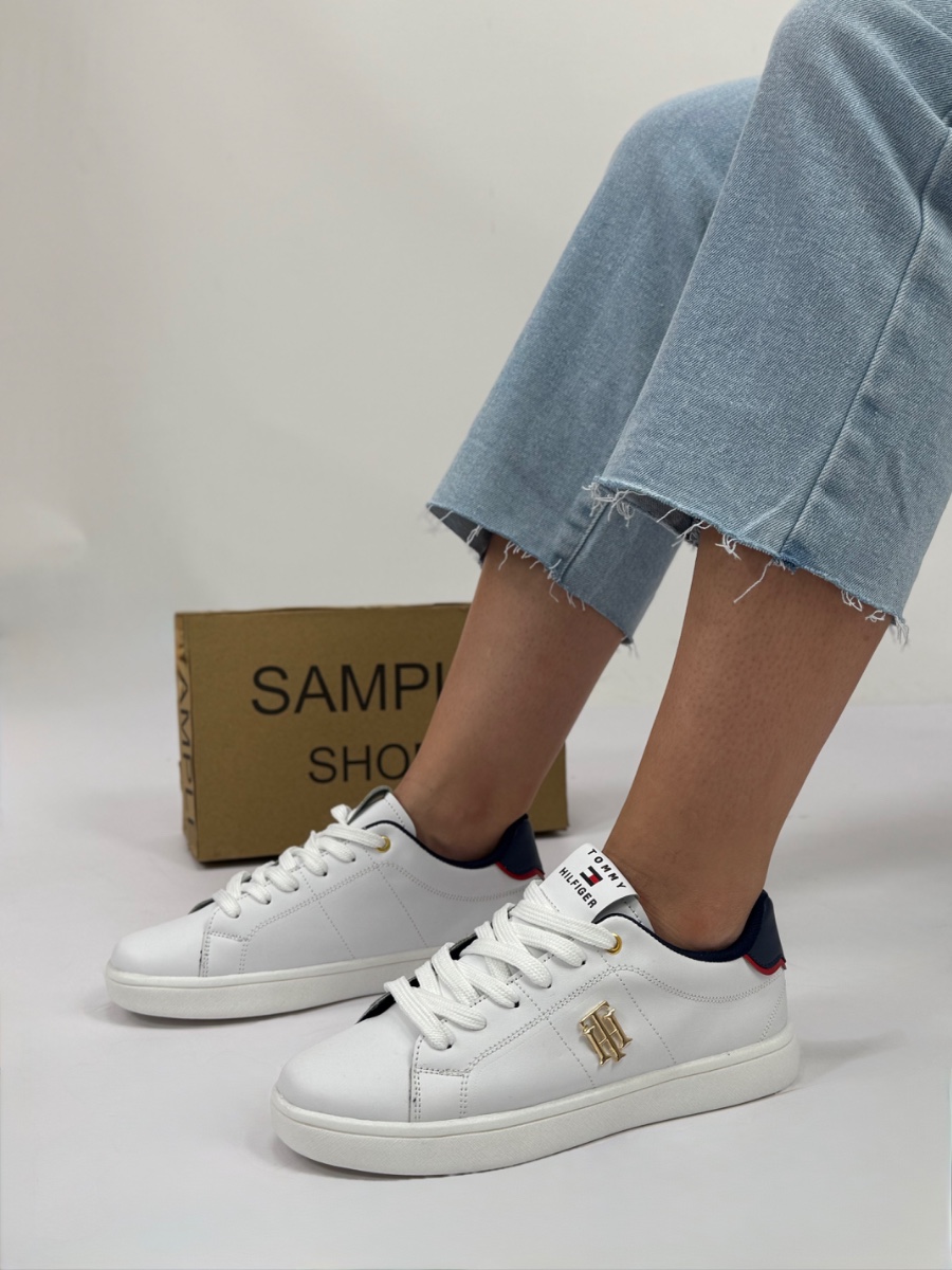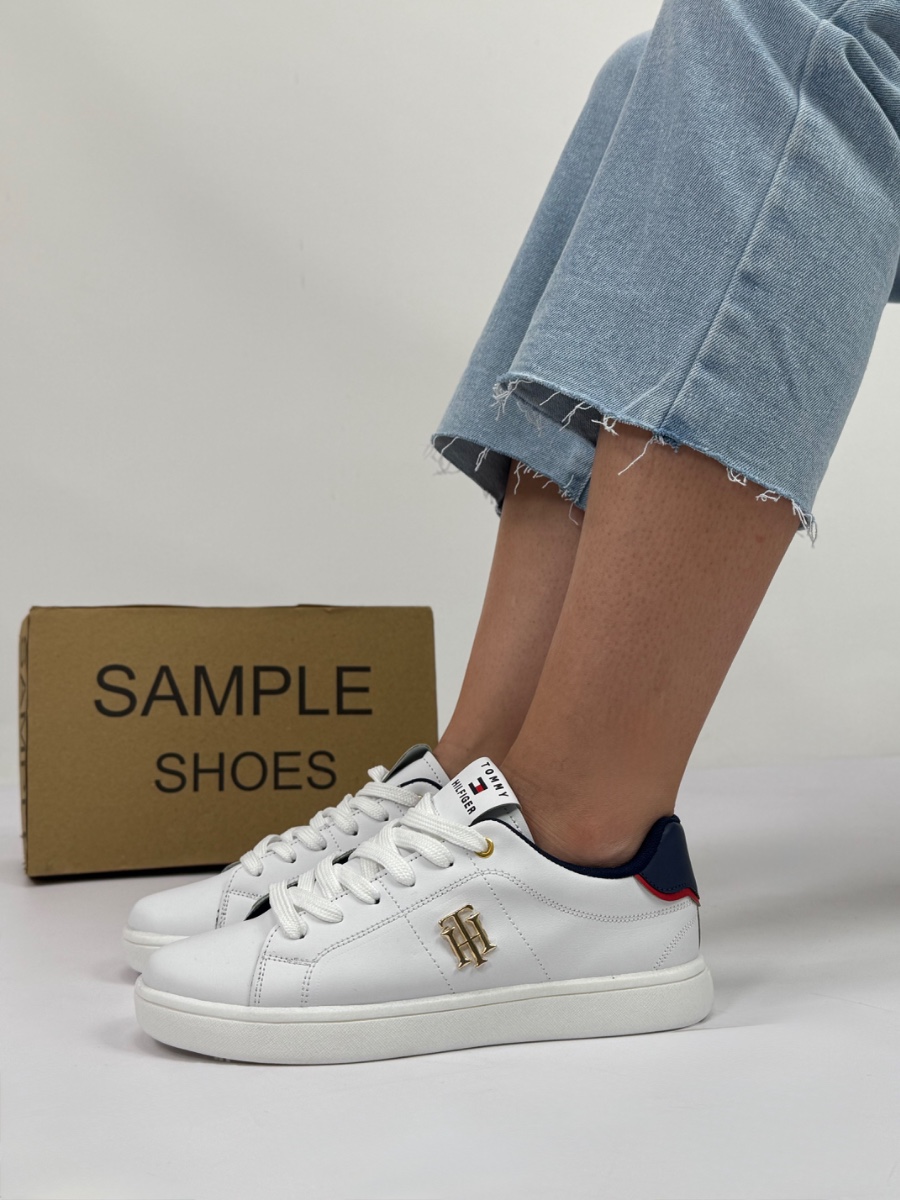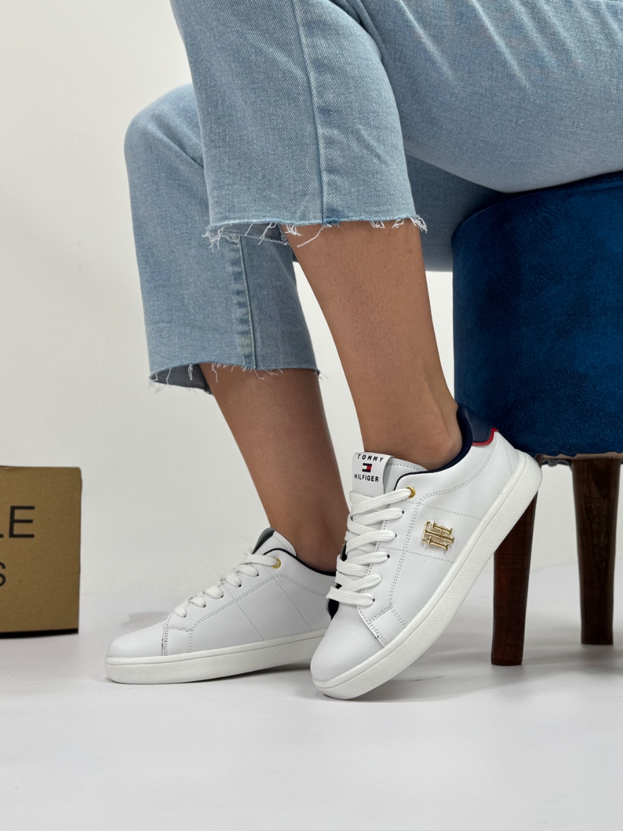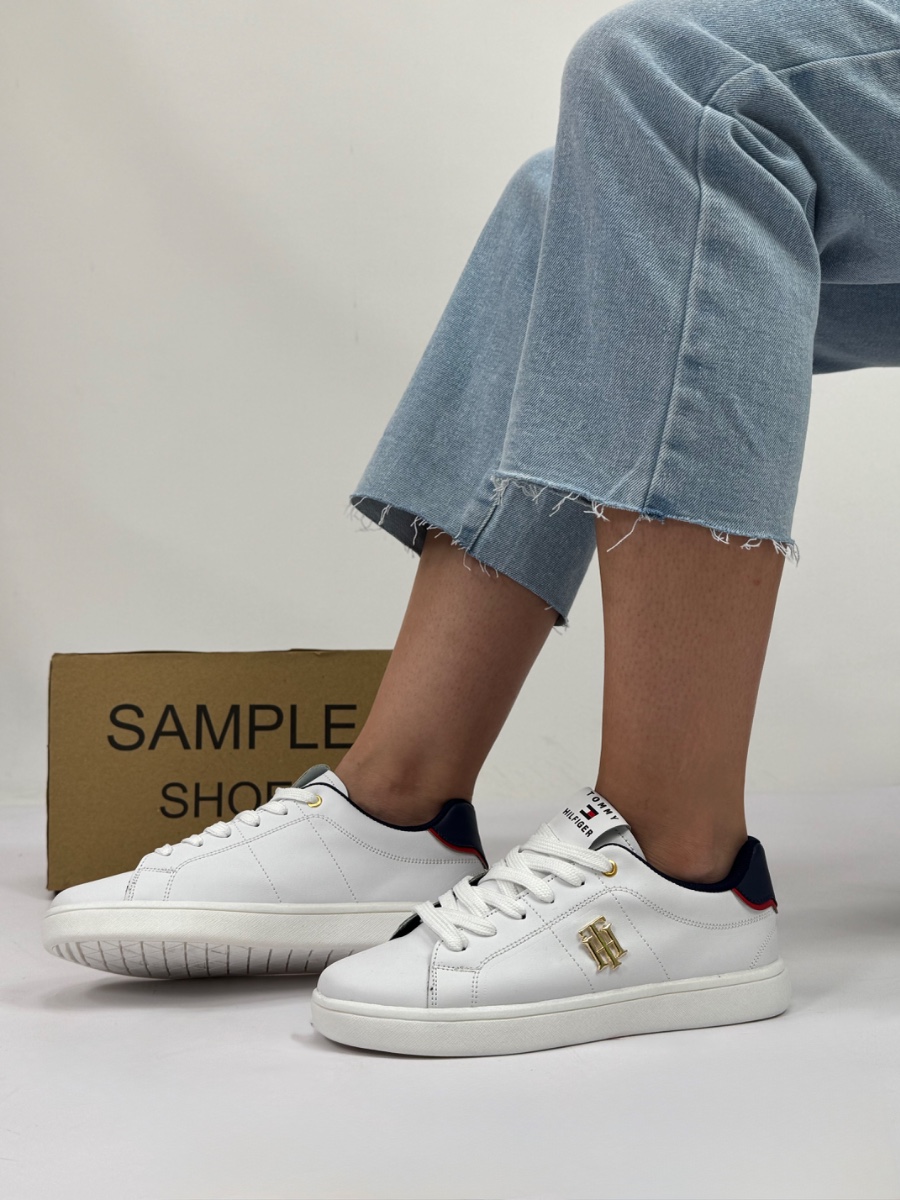 کتانی سفید، قلب تپنده هر کمد لباسی است! این مدل از تامی هیلفیگر، با ترکیبی از رنگ سفید روشن، جزئانی کلاسیک تامی هیلفیات آبی و قرمز و لوگوی طلایی، ظاهری مدرن و در عین حال کلاسیک را برای استایلهای بهاری و تابستانی شما به ارمغان میآورد. این کفشها نماد سادگی شیک و راحتی بیچون و چرا هستند.