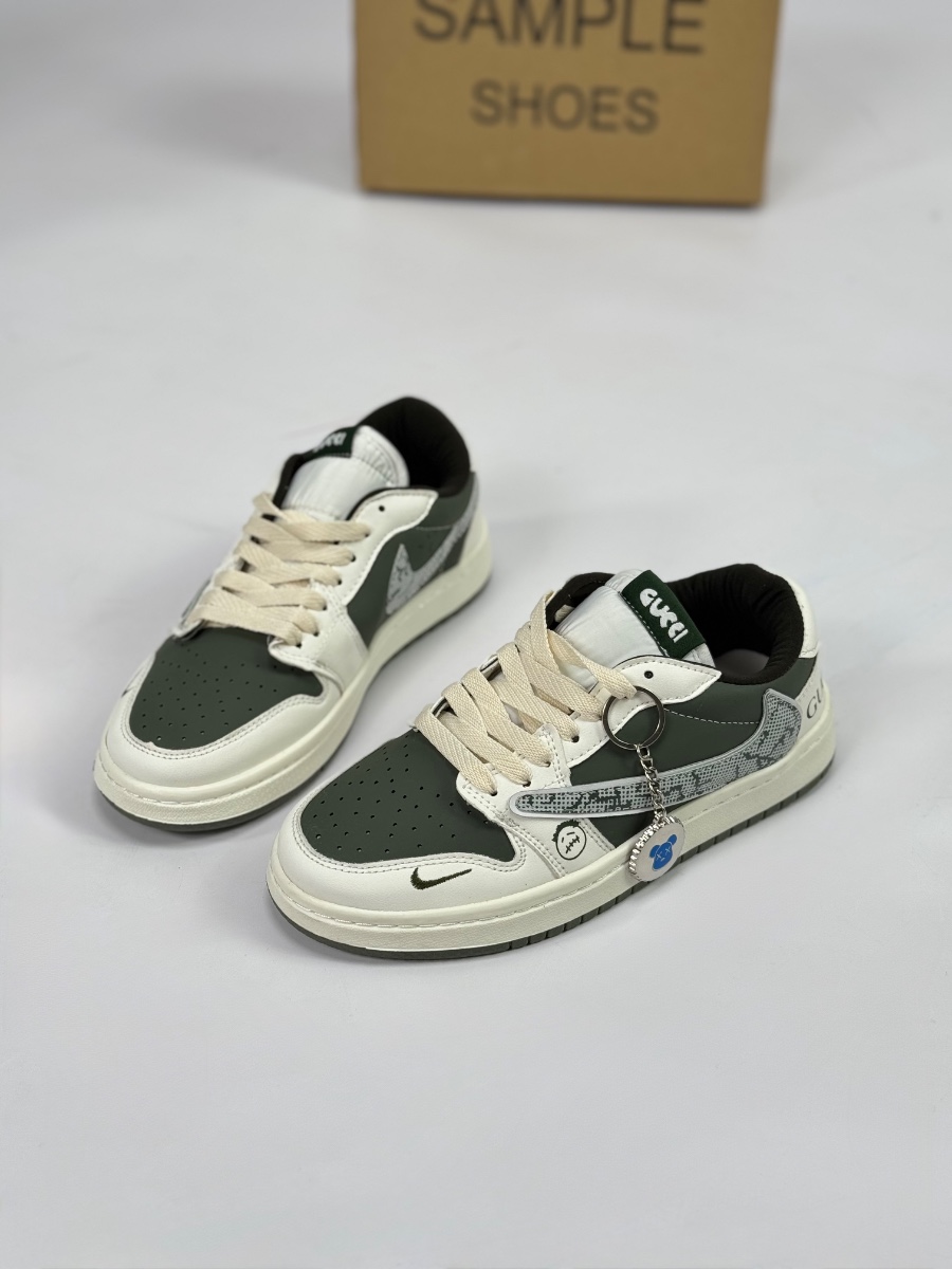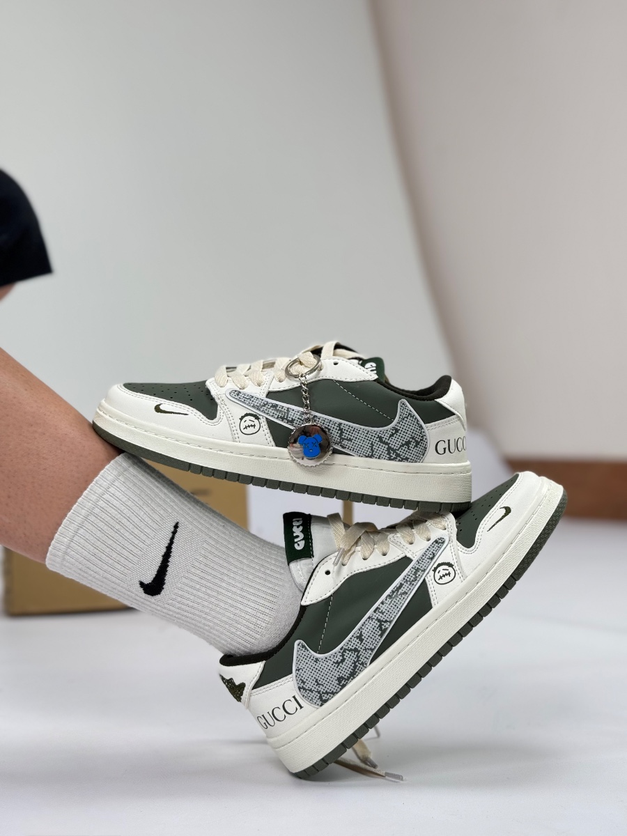 این مدل یک نسخه الهامگرفته و سفارشی از نایک ایر جردن ۱ لوو است که زیبایی طراحی ساده جردن را با المانهای خاص و متمایز ترکیب کرده است. با وجود استایل Low، این کفش به شدت از طراحیهای پرطرفدار هنرمندانی چون تراویس اسکات در بخش جزئیات و همچنین نمادهای برند گوچی در بخش برندینگ الگو گرفته است.