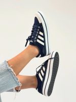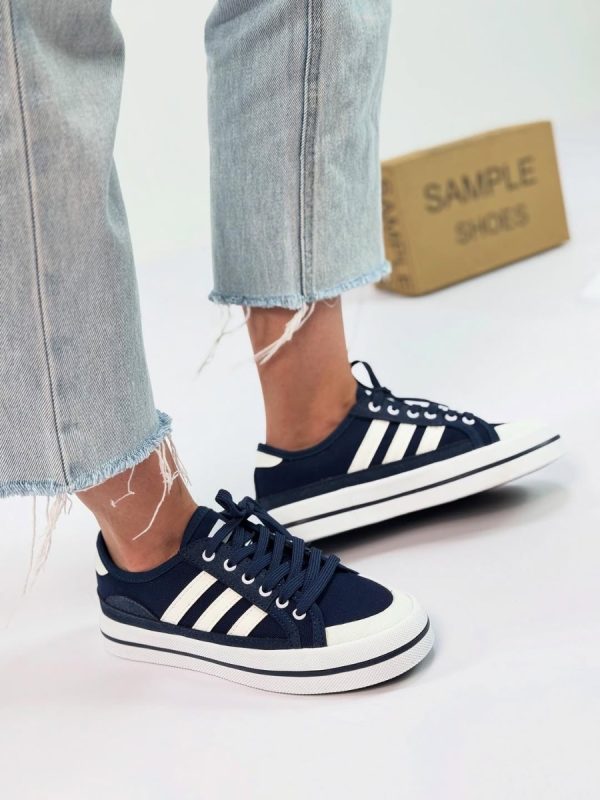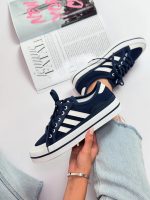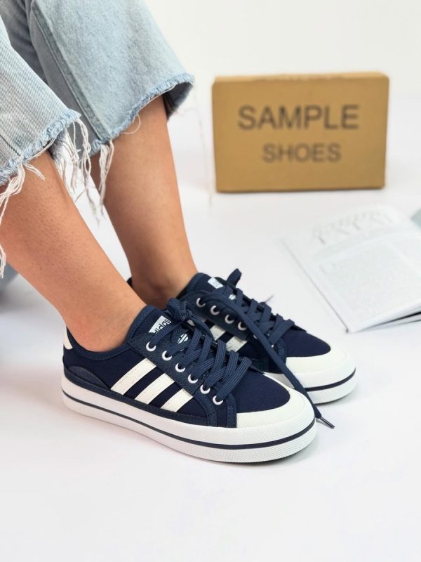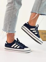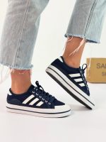 این کتونی سبک از برند معروف آدیداس با طراحی الهام‌گرفته از سبک ونس، انتخابی عالی برای استفاده‌ی روزمره و راحتی بی‌نظیر است. رنگ سرمه‌ای کلاسیک آن با سه خط سفید نمادین آدیداس، ظاهری ساده اما شیک به کفش می‌دهد که به‌راحتی با انواع استایل‌ها ست می‌شود.