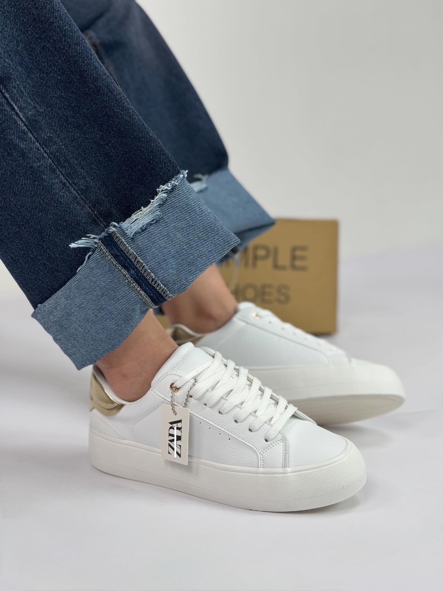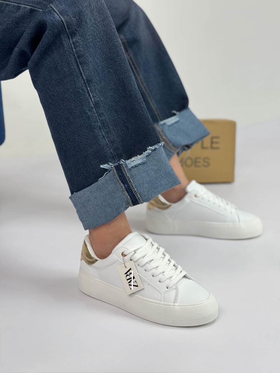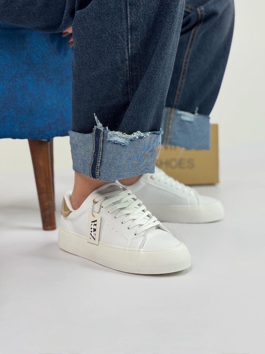 ✨ معرفی محصول: کتانی بیسیک زارا با تزئینات طلایی (Zara Basic White Sneaker with Gold Accents)