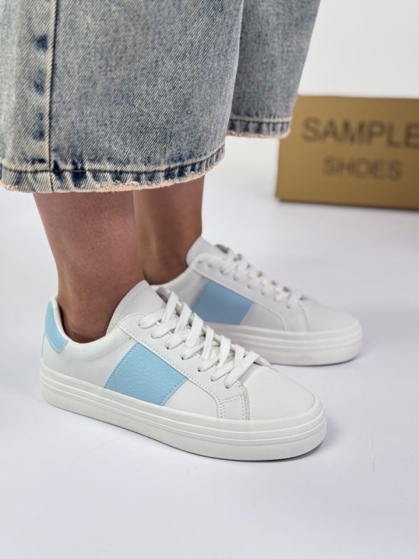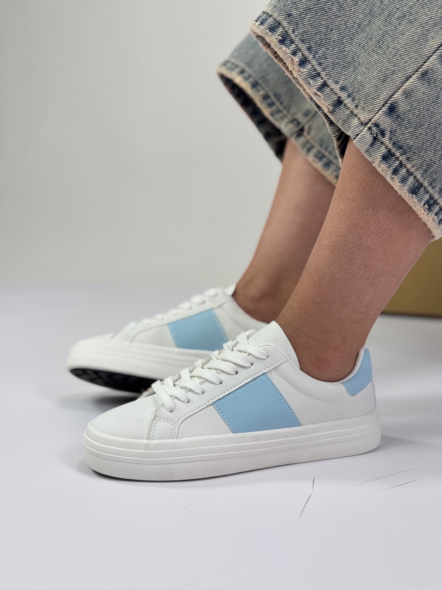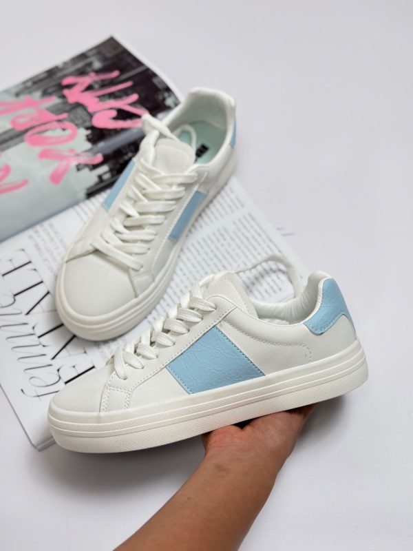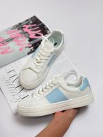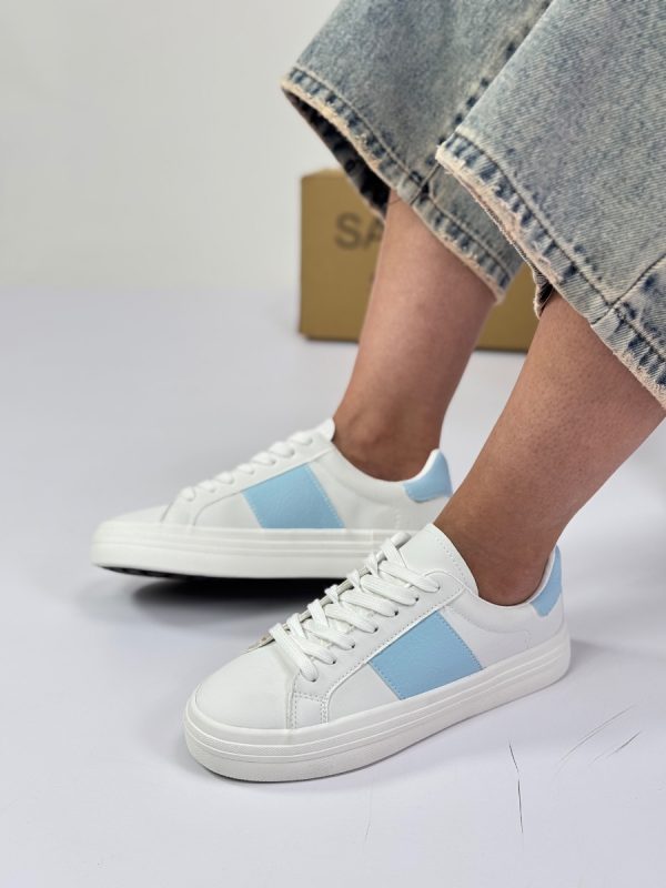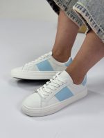 کتونی ونس سفید زنانه با نوار سفید و آبی روشن