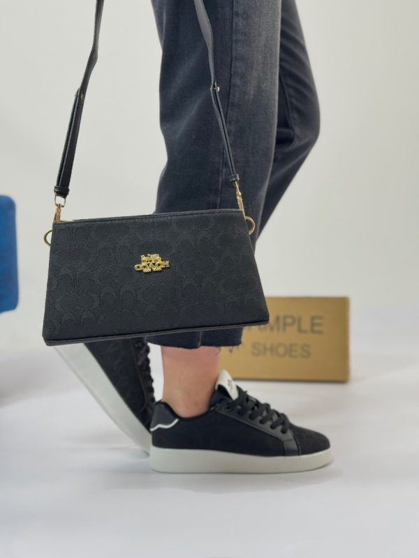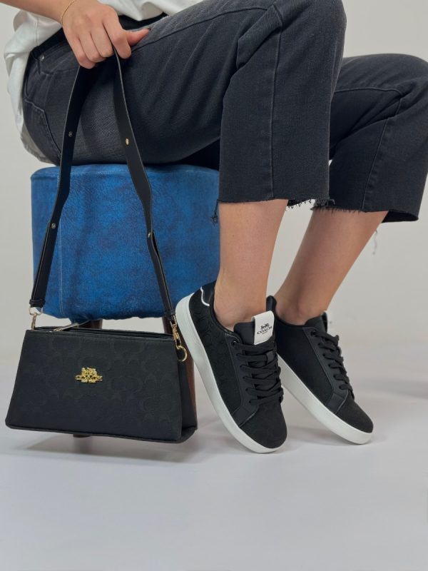 لوگوی برند: نشان برند COACH (یا مشابه) به‌صورت برجسته و واضح روی زبانه دیده می‌شود که اصالت و کیفیت محصول را تایید می‌کند.