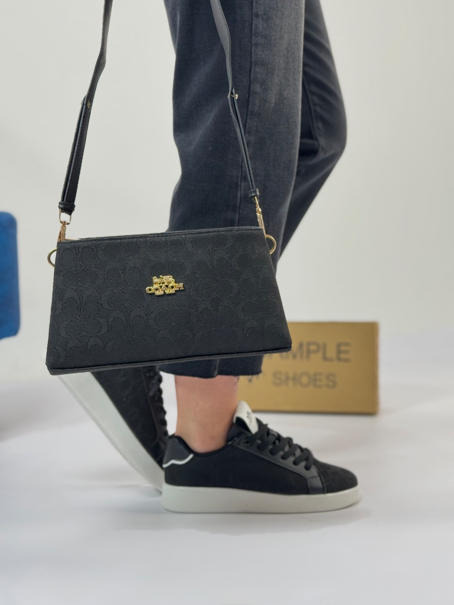 این کفش ورزشی مشکی کلاسیک با زیره‌ی سفید یک انتخاب بی‌نقص برای استایل روزمره و کژوال شماست. طراحی مینیمال و در عین حال شیک آن، این امکان را فراهم می‌کند که به‌راحتی با هر نوع لباسی، از جین گرفته تا دامن‌های کوتاه، ست شود.