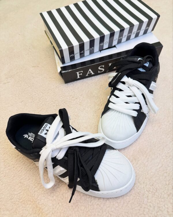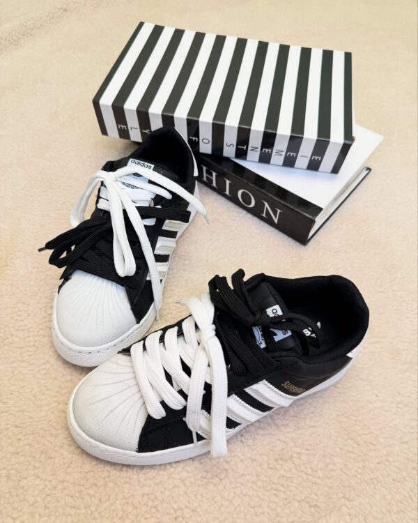 به دنیای کفشهای نمادین و جاودانه آدیداس قدم بگذارید با کتونی آدیداس سوپر استار مشکی سفید دوبل بند زنانه! این کتونی، با بیش از نیم قرن تاریخچه در قلب فرهنگهای مختلف، همواره نمادی از اصالت و استایل بوده است. اکنون، با یک ویژگی منحصر به فرد، این مدل کلاسیک به اوج جذابیت رسیده تا حضوری چشمگیر در مجموعه کفشهای شما داشته باشد.