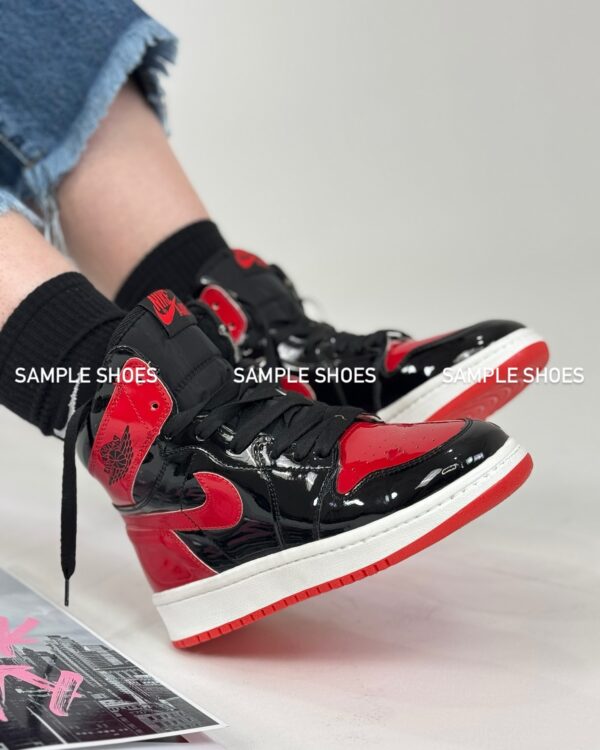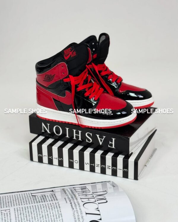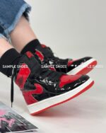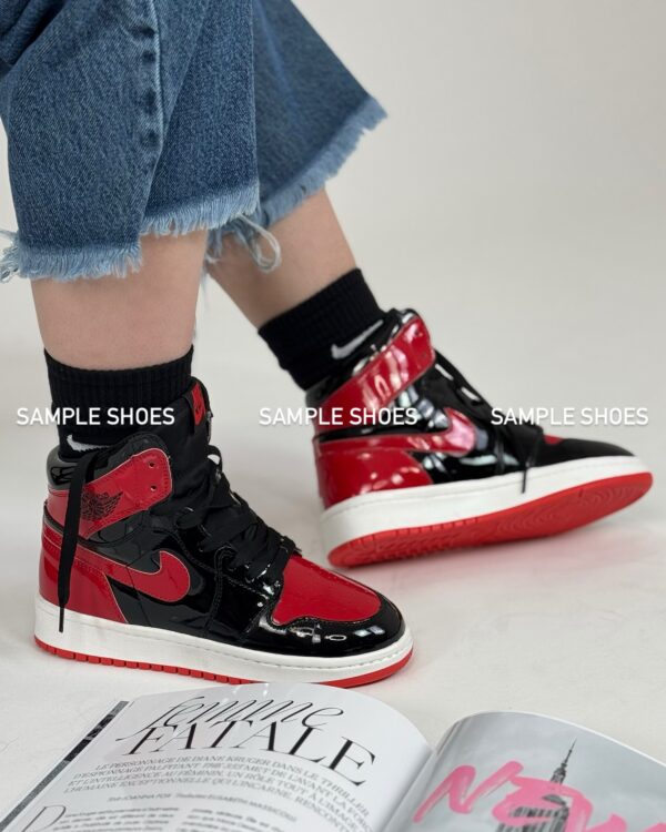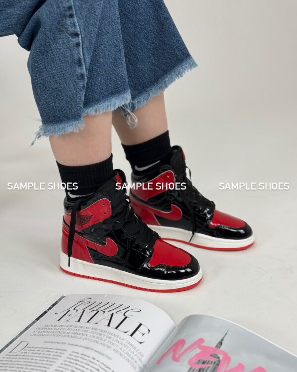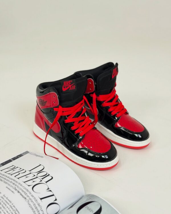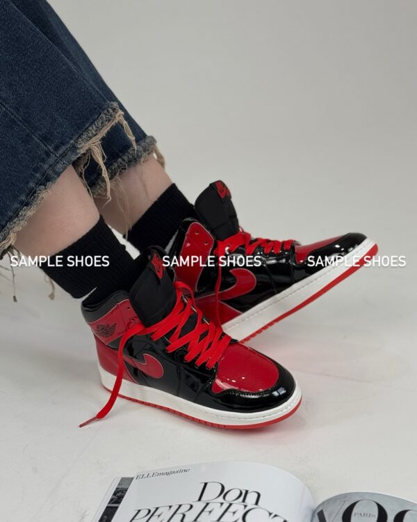 کتونی جردن 1 های ورنی مشکی قرمز زنانه | نمادی از قدرت و درخشش در استایلی افسانهای