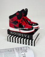 طراحی این کتونی، بر پایه سیلوئت کلاسیک و ساق بلند جردن ۱ بنا شده که پشتیبانی عالی از مچ پا را فراهم میکند. ویژگی برجسته این مدل، جنس رویه تماماً ورنی آن است. این چرم ورنی براق و درخشان، به رنگهای مشکی و قرمز کفش عمق و جذابیتی دوچندان میبخشد و حسی لوکس و پریمیوم را به آن میدهد که آن را از مدلهای معمولی متمایز میسازد.