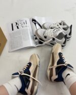 - کرم / بژ، سرمهای و قهوهای: (مدل با لژ کرم و سرمهای در تصاویر) ترکیبی گرم، خنثی و بسیار شیک که برای استایلهای مدرن و روزمره ایدهآل است. رنگ کرم روشن در رویه با جزئیات سرمهای و قهوهای/طوسی در زیره و پنلها هماهنگی بینظیری ایجاد کرده است.
