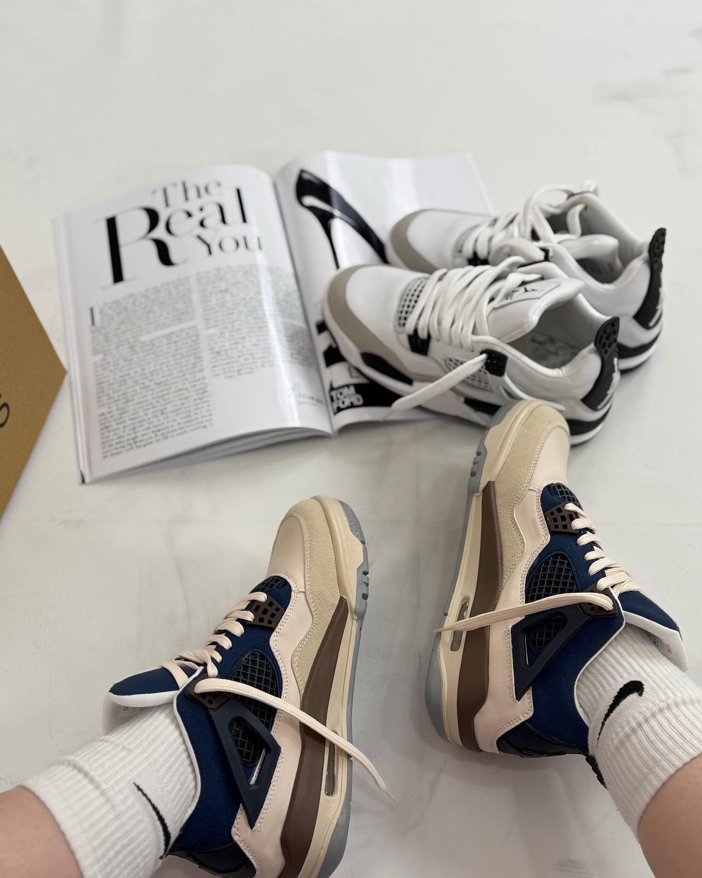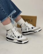 طراحی جردن ۴ با ویژگیهای متمایز خود نظیر پنلهای مشبک در کنارهها، “بال”های پلاستیکی نمادین برای نگهداری بندها، و زیره حجیم و چند لایه، ظاهری قدرتمند و در عین حال شیک ایجاد کرده است. این کتونیها با ساختار دقیق و توجه به جزئیات، هم برای کلکسیونداران و هم برای استفاده روزمره عالی هستند.