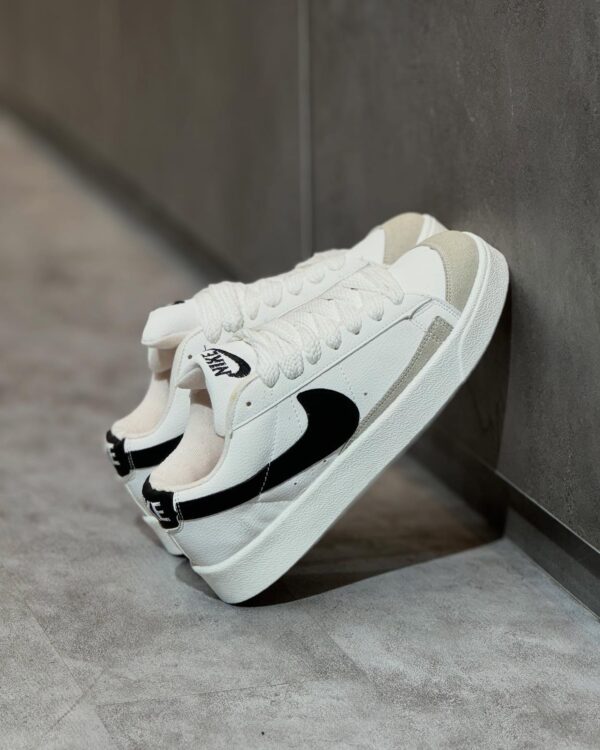 طرح اصلی این کتونی بر پایه سیلوئت ساده و ساق کوتاه استوار است که ظاهری شیک و در عین حال ورزشی به آن میبخشد. ویژگی بارز آن، لوگوی بزرگ و نمادین Swoosh نایکی است که از کناره کفش آغاز شده و تا پشت آن امتداد مییابد. بخش پنجهای دارای ظاهر جیرمانند و خطوط دوخت ظریف، به طراحی بلیزر اصالت میبخشند. زیره یکپارچه و تخت کفش، علاوه بر پایداری در حین حرکت، راحتی بینظیری را برای پاهای شما در طول روز فراهم میکند. زبانهی کفش با لوگوی “NIKE” نیز، نشانگر هویت برند است.