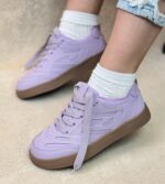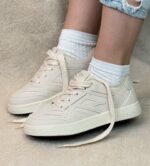 طرح اصلی این کتونیها بر پایه سیلوئت ساده و ساق کوتاه استوار است که ظاهری تمیز و همهپسند به آنها میبخشد. رویه کفش دارای پنلهای متعدد با دوختهای ظریف است که جلوهای پویا و بافتدار ایجاد کردهاند؛ سوراخهای کوچک در قسمت پنجه نیز، به تهویه بهتر هوا کمک میکنند. زیره یکپارچه به رنگ قهوهای (Gum Sole)، تضادی جذاب با رنگهای روشن رویه ایجاد کرده و به کفش حسی از اصالت و نوستالژی میبخشد، ضمن اینکه چسبندگی و دوام عالی را تضمین میکند. لوگوی “YEERFA” به صورت برجسته بر روی زبانهی کفش، اصالت این طرح را نشان میدهد.