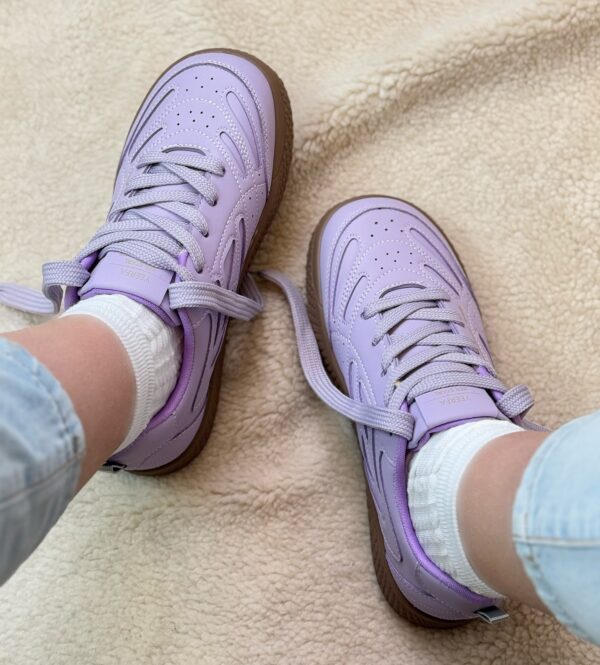 - یاسی / بنفش روشن: (مدل روی پا در تصویر اول) این رنگ، حسی از لطافت، آرامش و ظرافت را منتقل میکند و برای استایلهای بهاری و فانتزی بسیار مناسب است.